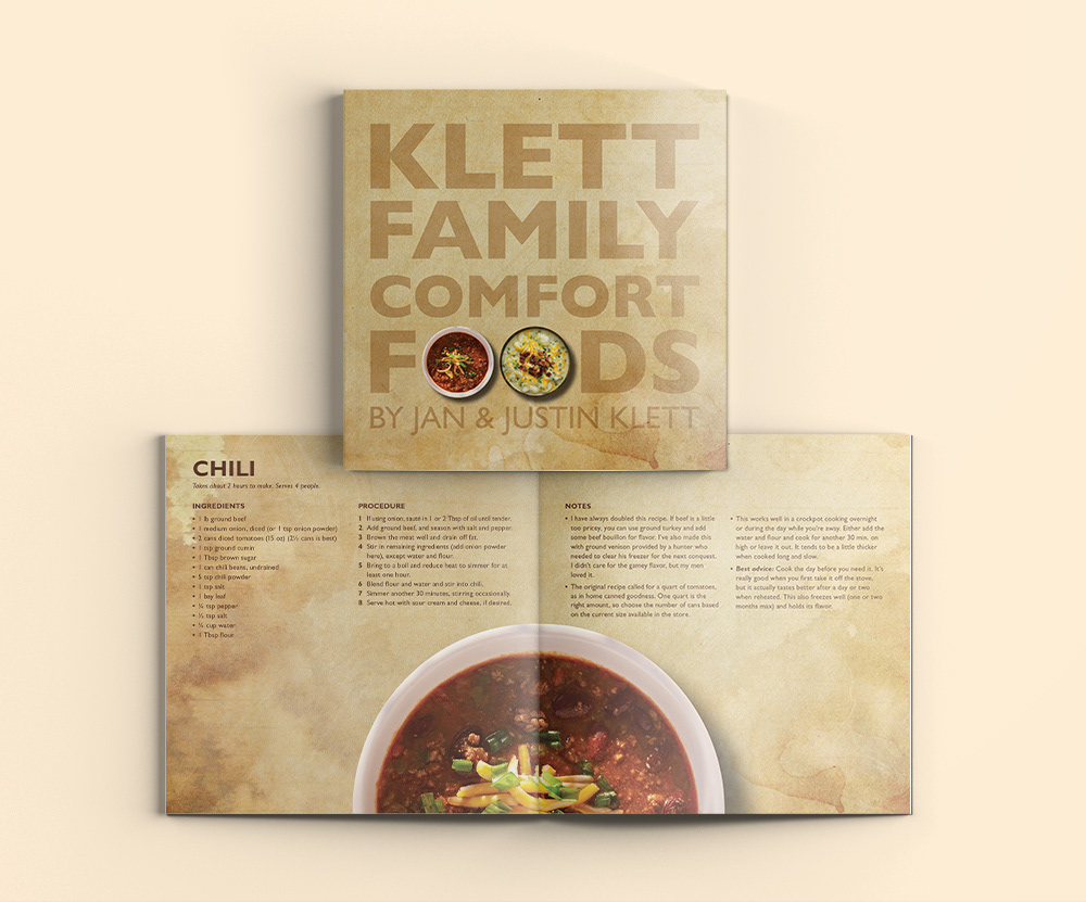 This is a personal project that had been talked about in my family for a very long time. The point of this book was having a place to collect not only treasured family recipes, but also memories and stories. I wanted something my brother and I could take with us as we went out and started our own families.